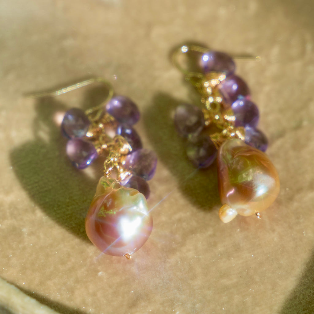 Pink Baroque Akoya Pearl + Amethyst Earrings
