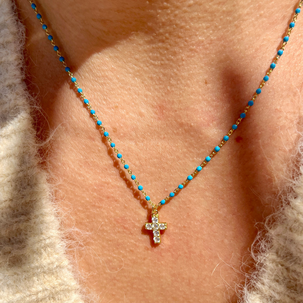 Turquoise Enamel Cross Necklace